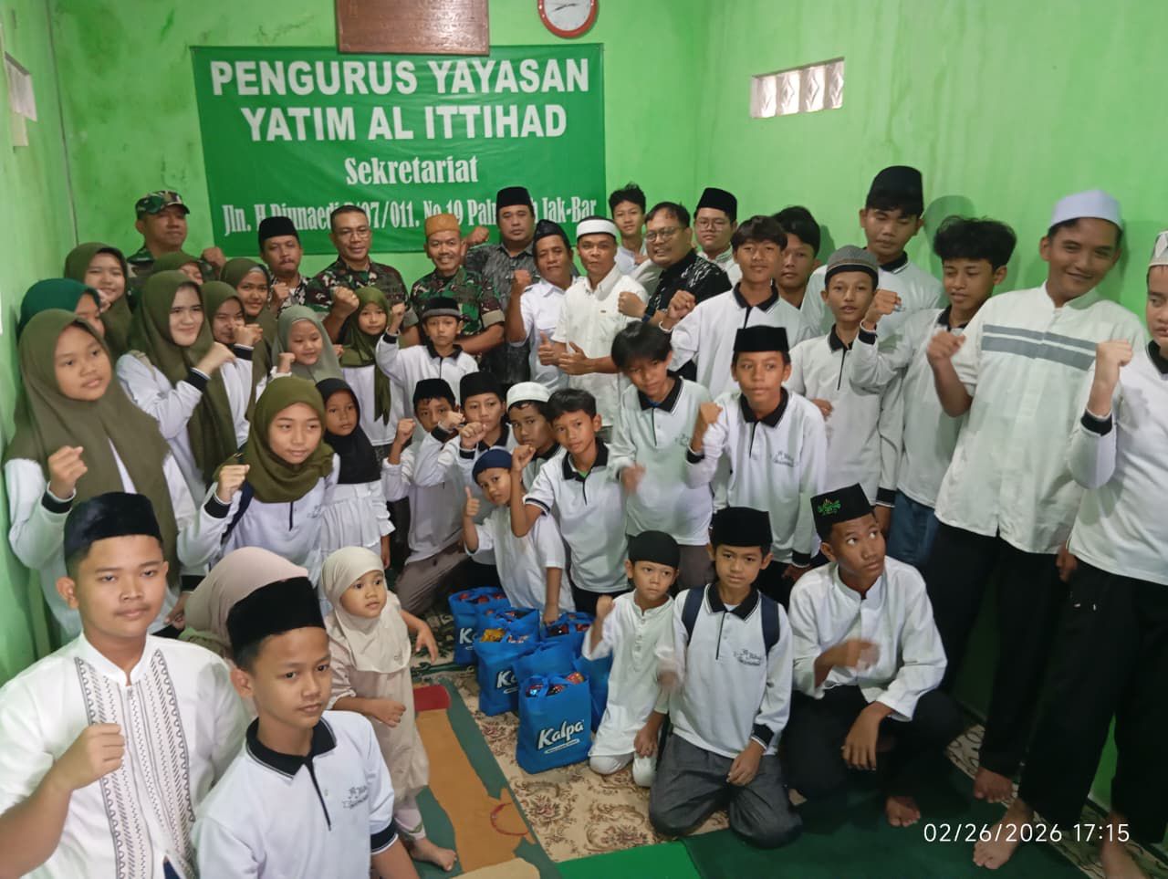 Penyerahan bantuan tersebut dilaksanakan di Kantor Sekretariat Yayasan Yatim Al-Ittihad, Jalan H. Djunaedi, Gang Silaturahmi No.19 RT 007/RW 11, Kelurahan Palmerah, Jakarta Barat. Korem 052/Wkr diwakili oleh Danramil 03/Grogol Petamburan Mayor Inf Manatap Rajagukguk, S.E., M.H., M.M., bersama Pasilog Kodim 0503/JB Kapten Chk Sopzudin.