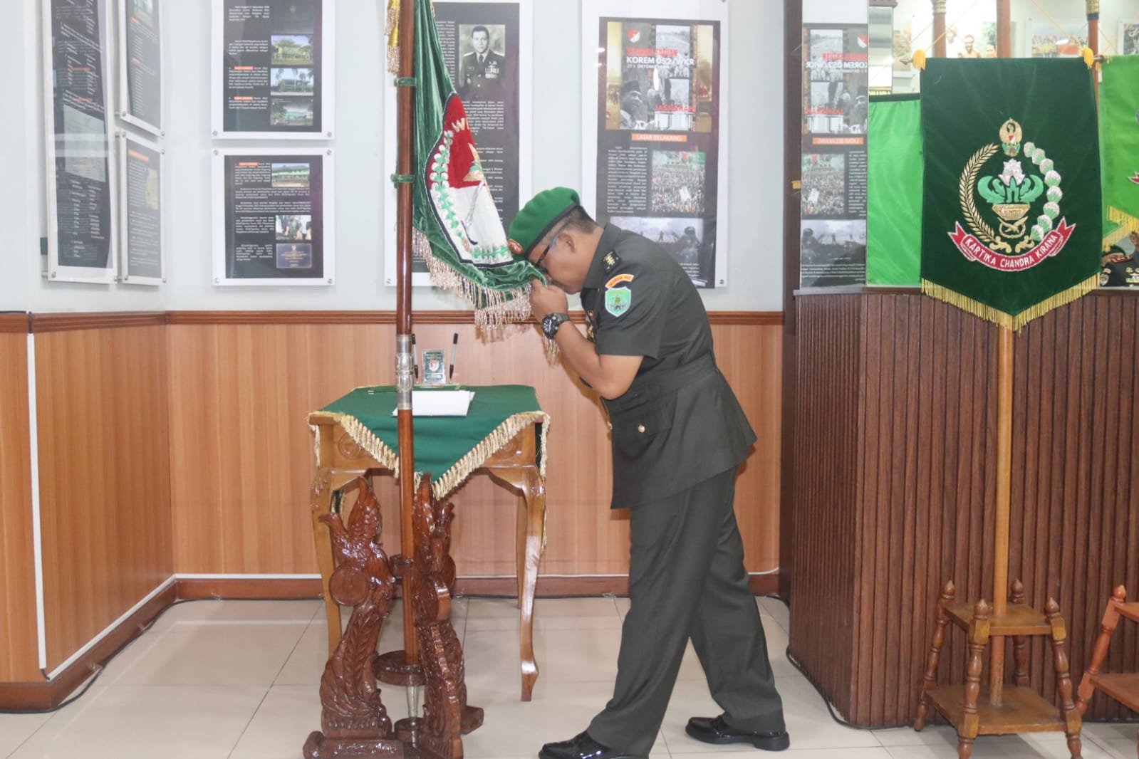 Korem 052/Wijayakrama menggelar Acara Tradisi Korps Penerimaan Jabatan Kepala Staf Korem (Kasrem) 052/Wkr, Rabu (21/1/2026), bertempat di Markas Korem 052/Wkr.