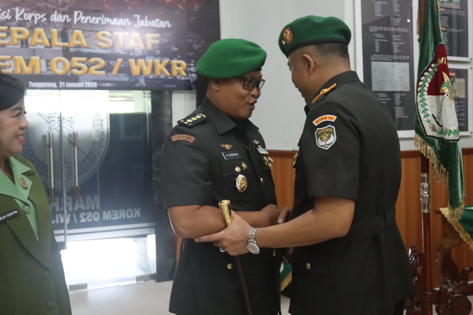 Acara tradisi korps penerimaan jabatan Kasrem 052/Wkr berlangsung dengan khidmat dan penuh makna, sekaligus menjadi wujud komitmen Korem 052/Wijayakrama dalam menjaga soliditas organisasi dan meningkatkan kualitas pengabdian kepada bangsa dan negara.