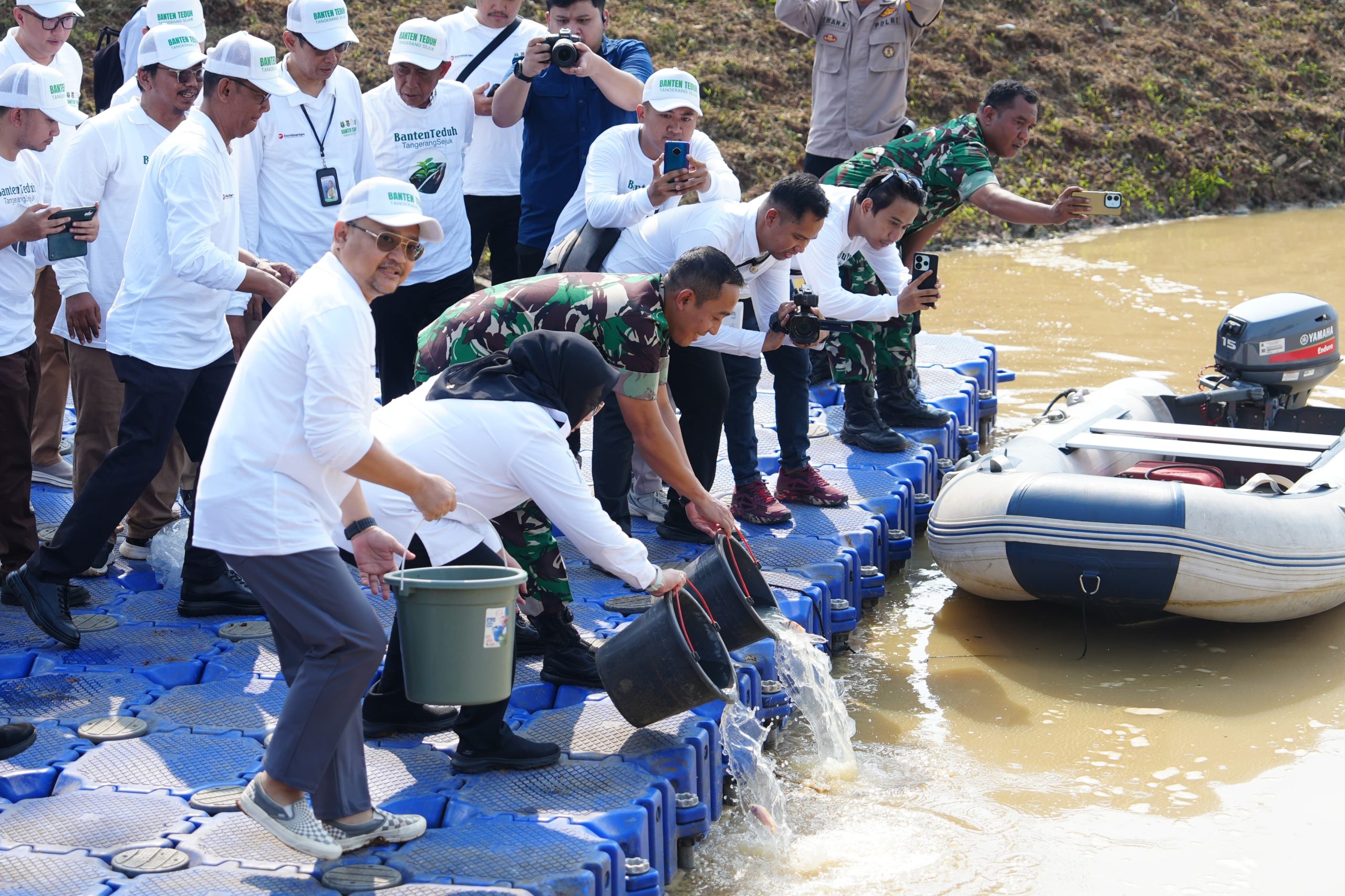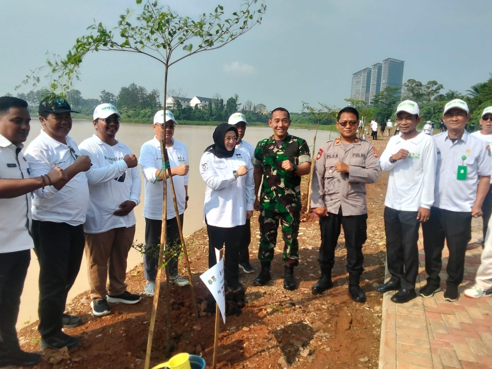 Hadir dalam kegiatan tersebut, Kolonel Arh Tamaji, S.Sos., M.I.Pol. (Kasiter Kasrem 052/Wkr) mewakili Danrem 052/Wkr, Dr. Wawan Gunawan, S.Sos., M.Si (Kepala DLHK Provinsi Banten) mewakili Gubernur Banten, Intan Nurul Hikmah, S.E (Wakil Bupati Tangerang), Febriyantoro (Tenaga Ahli Deputi II KSP), Yudi Budi Wibowo, S.E (Wakil Ketua DPRD Banten), Abdul Rahman Rasjid (Kabid OP BBWSCC Dirjen SDA), Gajar Ramadhan (DLHK Kabupaten Tangerang), Witono (Direktur PPMA KLH/BPLH), Farhan H. (mewakili DBMSDA Kabupaten Tangerang), Nanang Fitrianto (Kepala Seksi OP DAS Cidurian-Cisadane), Ade Yunus (Ketua Banksa Suci Foundation), Kustanto (mewakili Summarecon Serpong), Gerardus (mewakili Paramount), Eko Virgiyanto (Direktur Kepatuhan Bank Banten), unsur Forkopimcam serta tamu undangan lainnya.