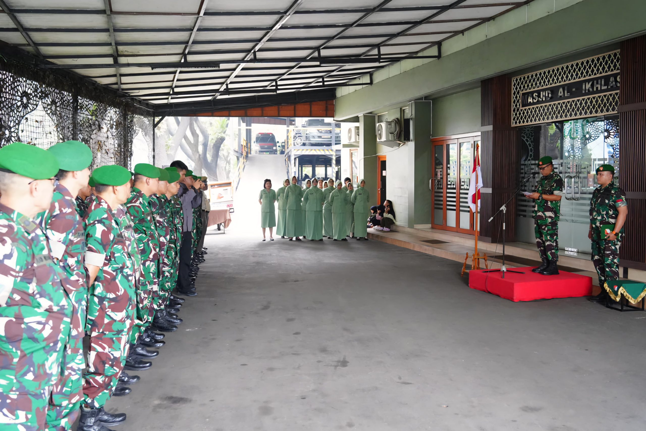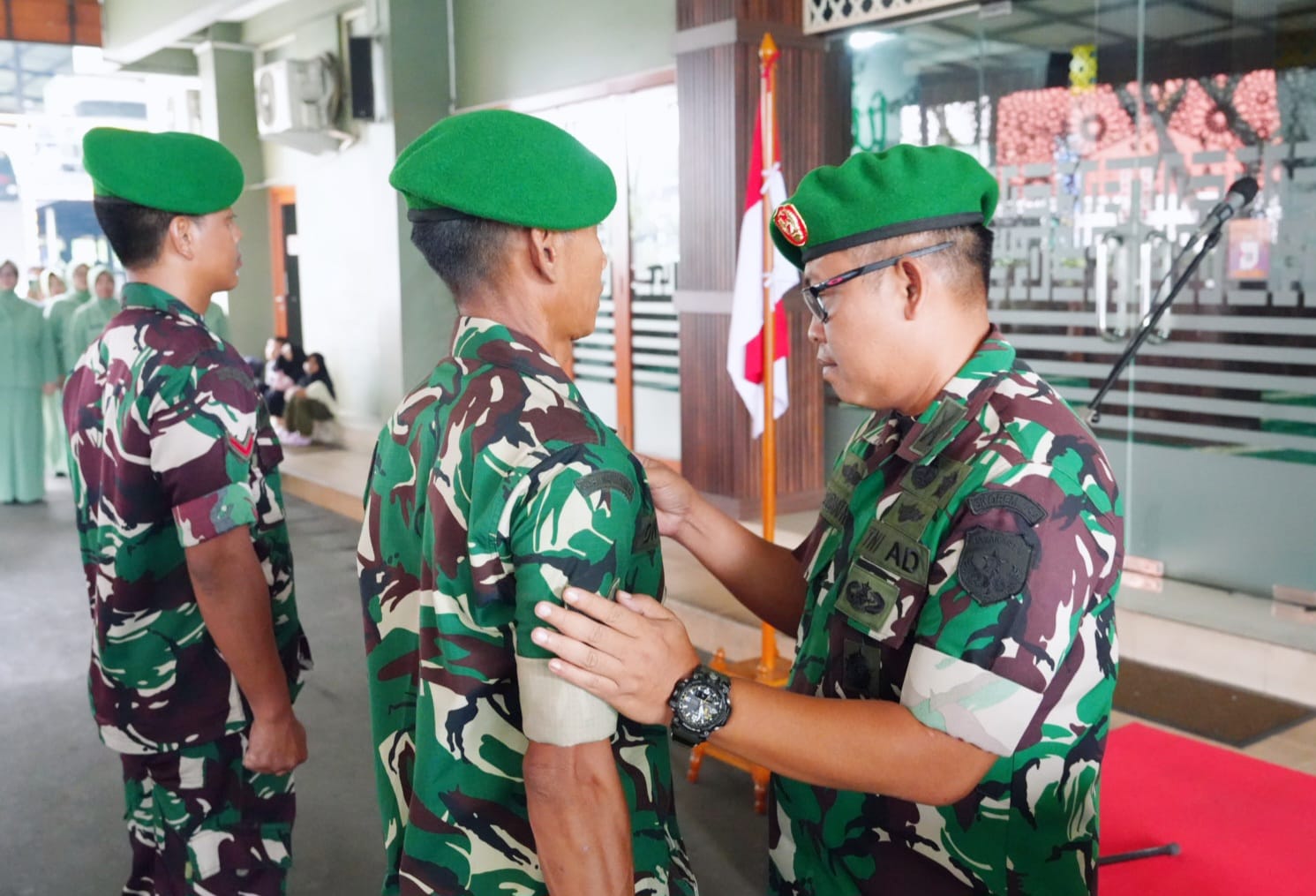 Mewakili Danrem 052/Wkr, Kasrem 052/Wkr Kolonel Inf Ato Sudiatna, S.I.P., memimpin upacara pelantikan kenaikan pangkat prajurit Makorem 052/Wkr 1 April 2026, bertempat di Makorem 052/Wkr, Kelapa Dua, Kabupaten Tangerang, Rabu (1/4/2026).