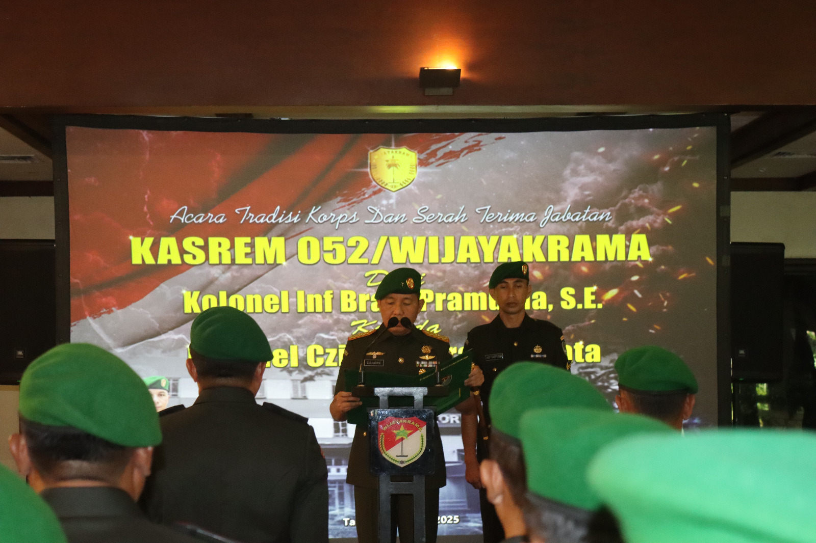 Serah terima jabatan ini dilaksanakan dalam sebuah upacara militer di Mahogany Ballroom, Aryaduta, Karawaci Tangerang, dipimpin langsung oleh Komandan Korem 052/Wkr, Brigjen TNI Zulhadrie S. Mara, M.Han. Selasa (8/7/2025).
