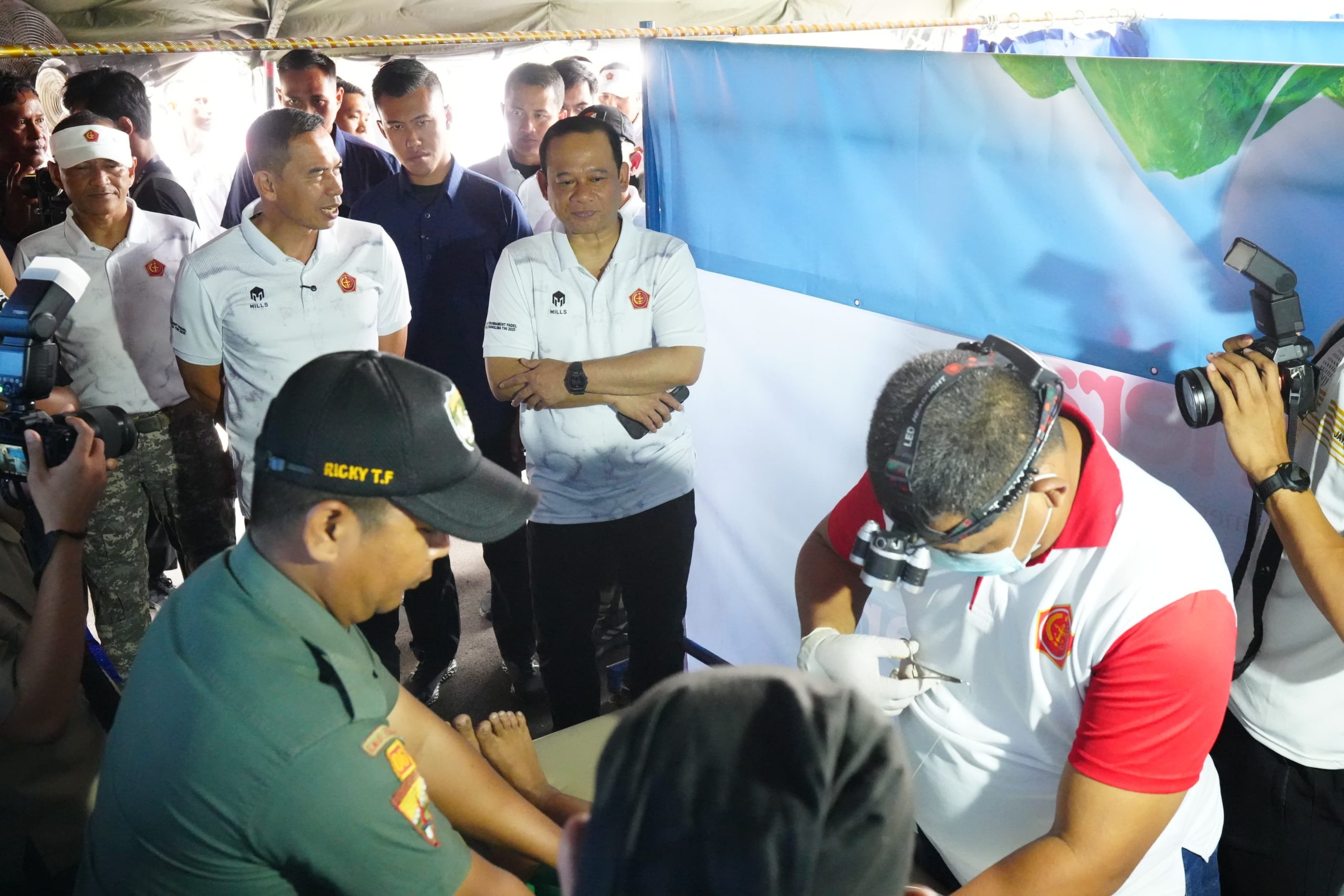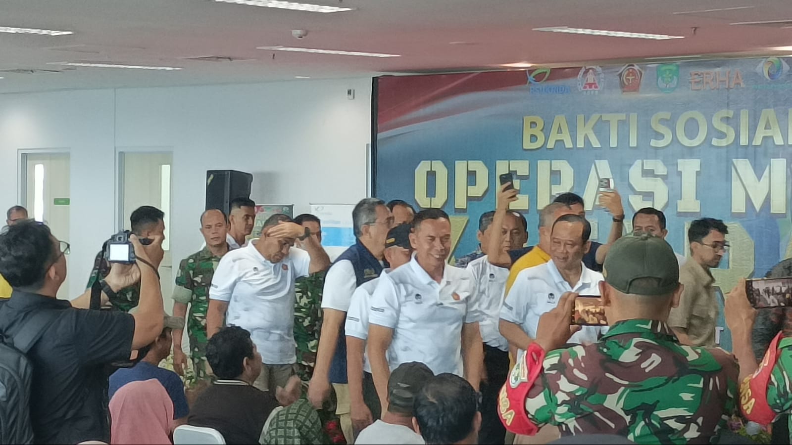 Pangdam Jaya Mayjen TNI Deddy Suryadi meninjau bakti sosial yang diselenggarakan satuan jajaran Korem 052/Wkr bertempat di Intercon Taman Kebon Jeruk dan RS. Ukrida, Kebon Jeruk, Jakarta Barat. Minggu (14/9/2025).