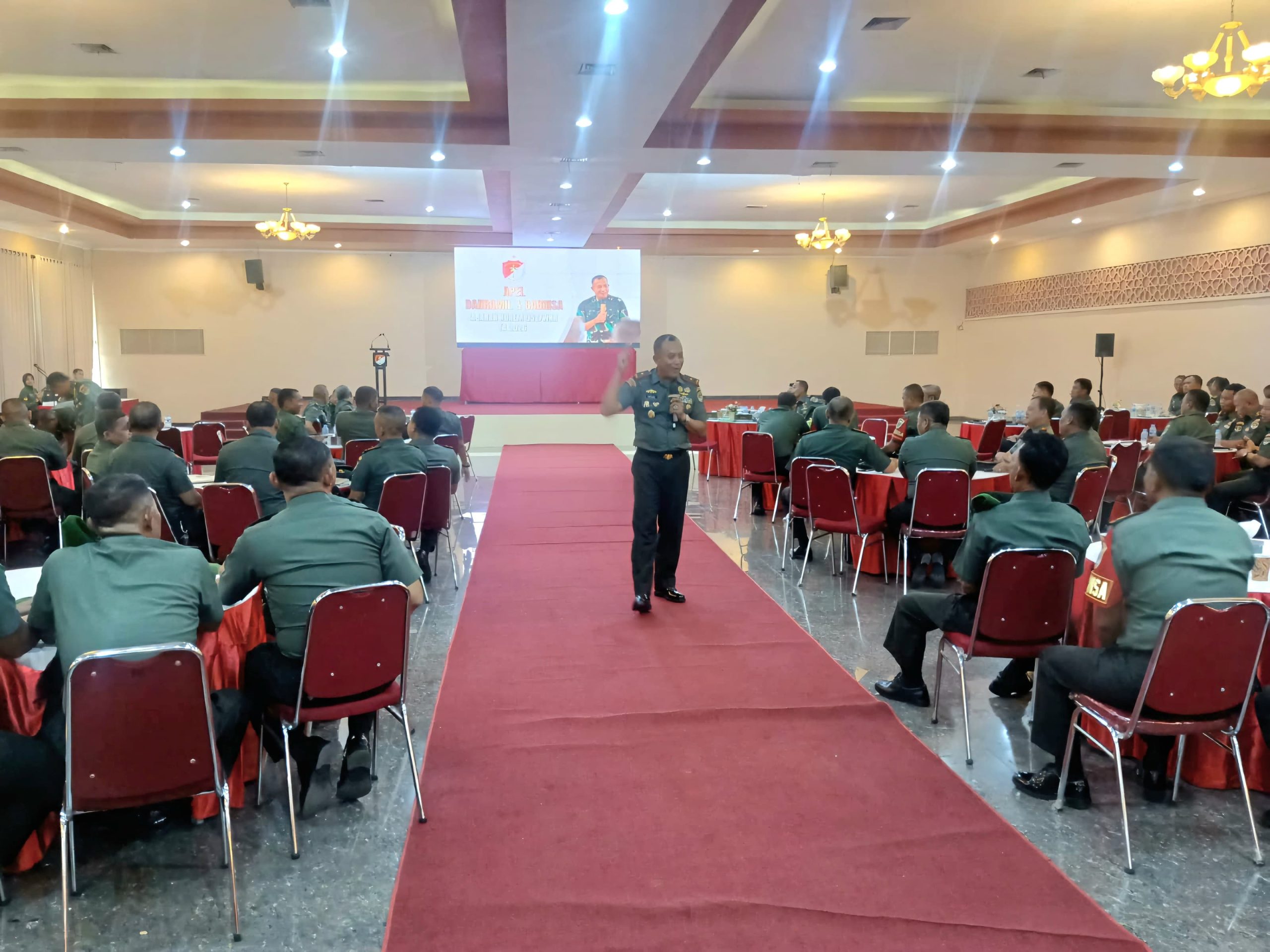 Kegiatan tersebut diikuti oleh para Kasi Korem 052/Wkr, para Dandim jajaran Korem 052/Wkr, para Pasi Kodim, serta seluruh Danramil, Batuud dan Babinsa Jajaran Korem 052/Wkr tersebut diawali dengan acara pembukaan, penayangan Kaleidoskop 2025 Korem 052/Wkr, penayangan video program unggulan TNI AD bidang Teritorial, paparan evaluasi para Kasi Korem 052/Wkr, Ceramah dari Rektor Universitas Jenderal Ahmad Yani Prof. Dr. Agus Subagyo, S.IP., M.Si.