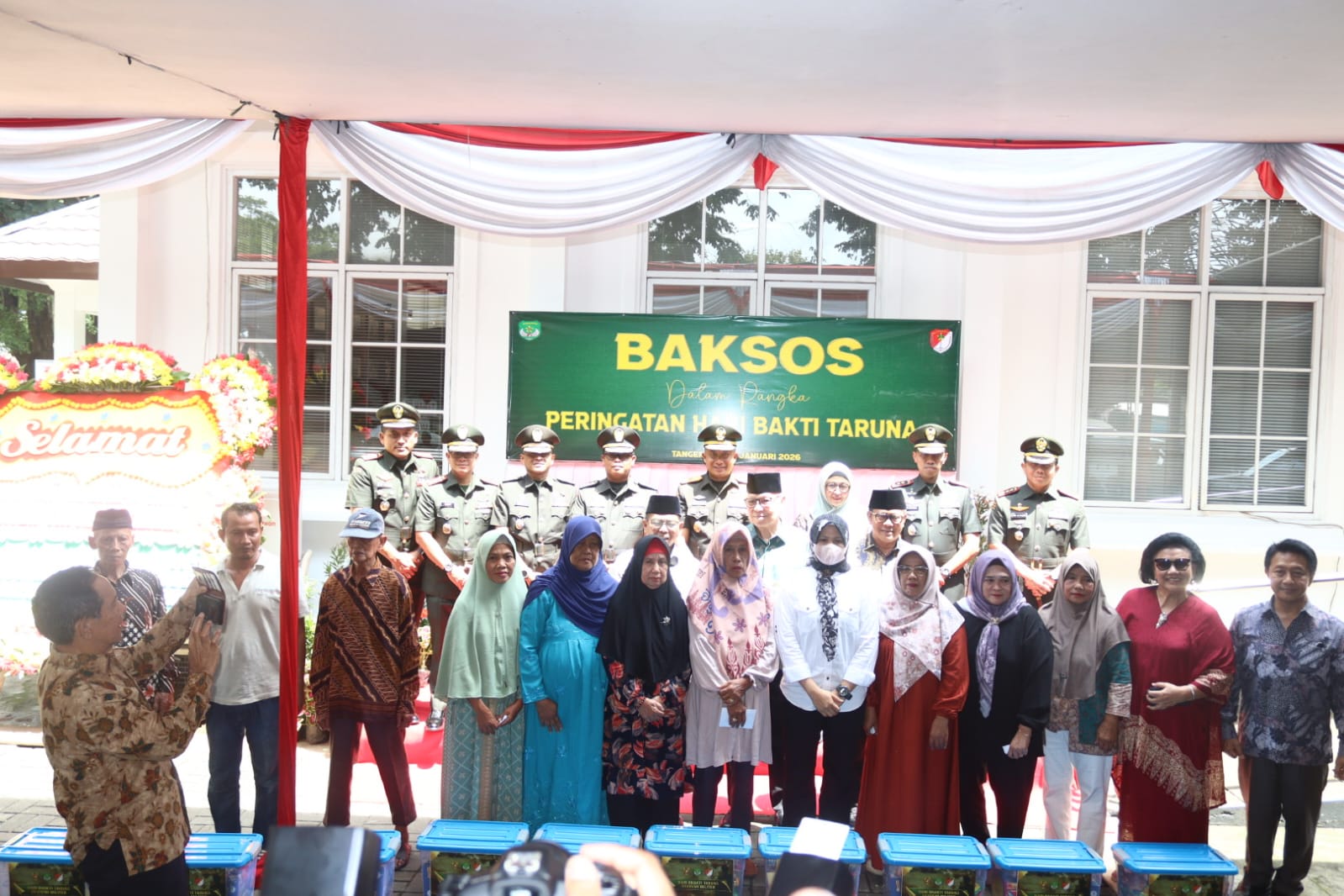 Usai ziarah, kegiatan dilanjutkan dengan bakti sosial berupa pemberian bantuan Sembako kepada Warakawuri di wilayah Korem 052/Wkr serta 200 warga kurang mampu, yang dipusatkan di halaman Museum TMP Taruna Daan Mogot, Tangerang.