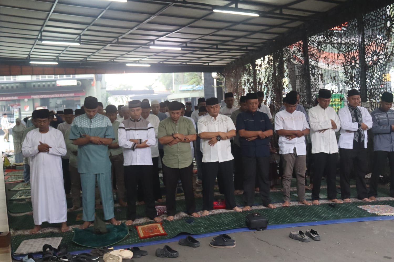 Sambut hari kemenangan keluarga besar Korem 052/Wijayakrama menggelar Sholat Idul Fitri 1447 Hijriah yang berlangsung khidmat di Masjid Al Ikhlas Makorem 052/Wkr, Sabtu (21/3/2026).