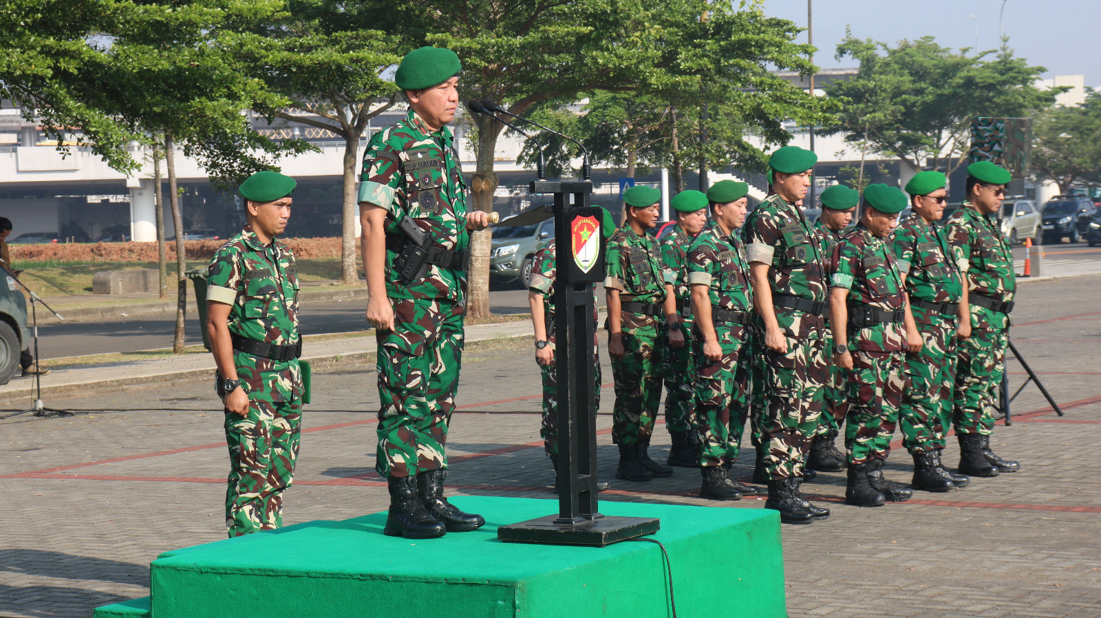 Komandan Korem 052/Wijayakrama Brigjen TNI Zulhadrie S. Mara, M.Han., memimpin apel gelar pasukan dalam rangka kesiapan penanggulangan bencana alam di wilayah satuan jajaran Korem 052/Wkr. Apel dilaksanakan di Lapangan Intermoda, BSD, Serpong, Kab. Tangerang. Rabu (23/7/2025)